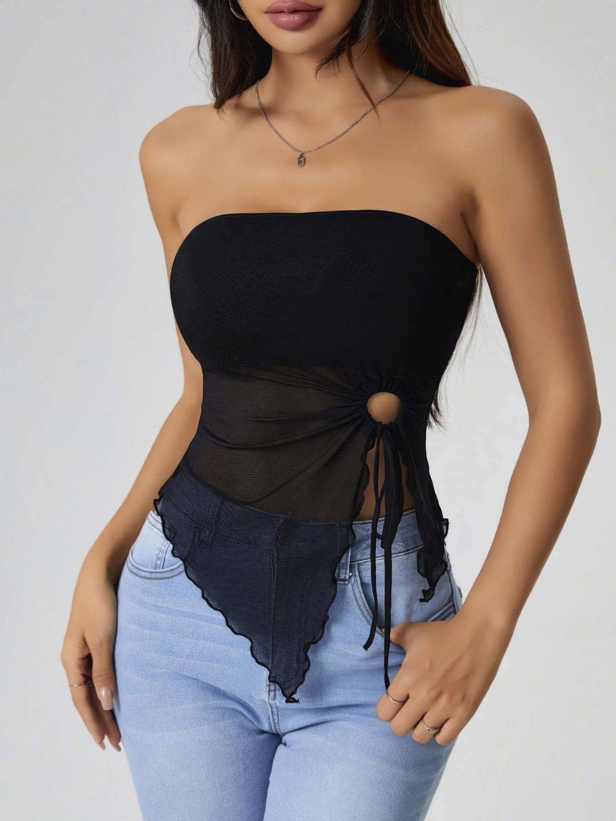 Kadın Siyah Crop Önden Halka Büzgü detaylı 5094